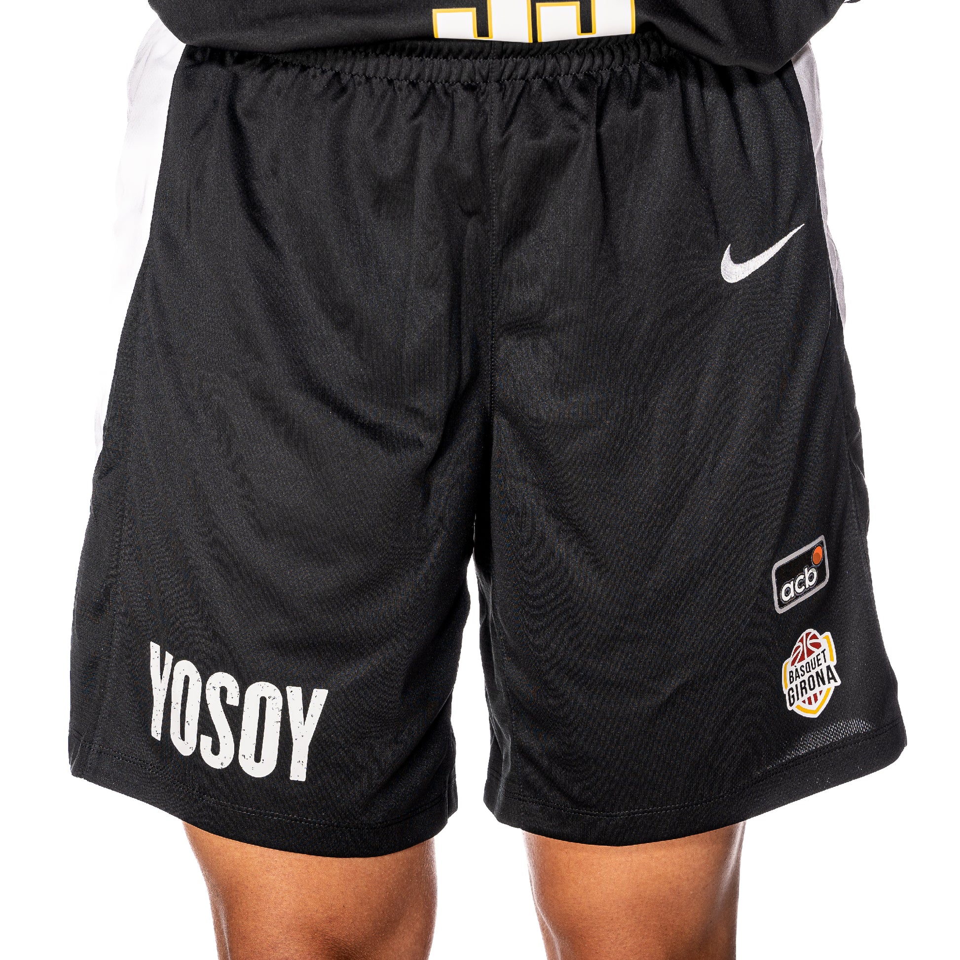 El pantalón color negro Nike Bàsquet Girona. Su diseño es de color negro con el escudo del equipo, YOSOY y ACB.