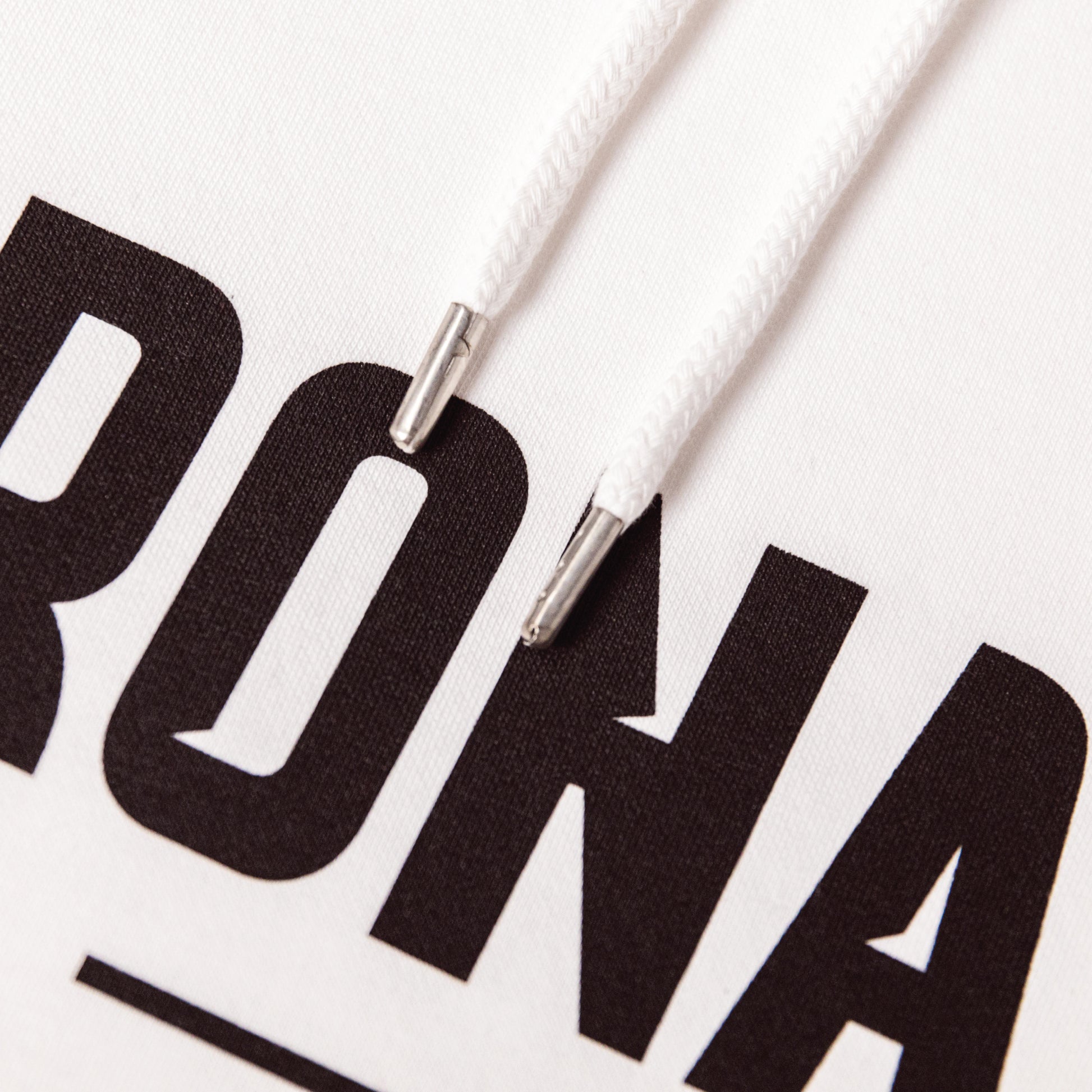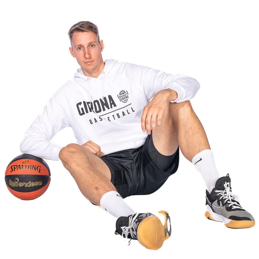 La sudadera "GIRONA BASKETBALL" del Bàsquet Girona 2022-23. En la parte pectoral luce el logotipo "GIRONA" por el sentimiento de pertenencia gerundense y de reivindicación de la cultura y la historia que representan la ciudad. En el lado izquierdo se encuentra el escudo del club y, debajo, la palabra BASKETBALL, que acentúa el estilo de calle asociado con la moda deportiva.