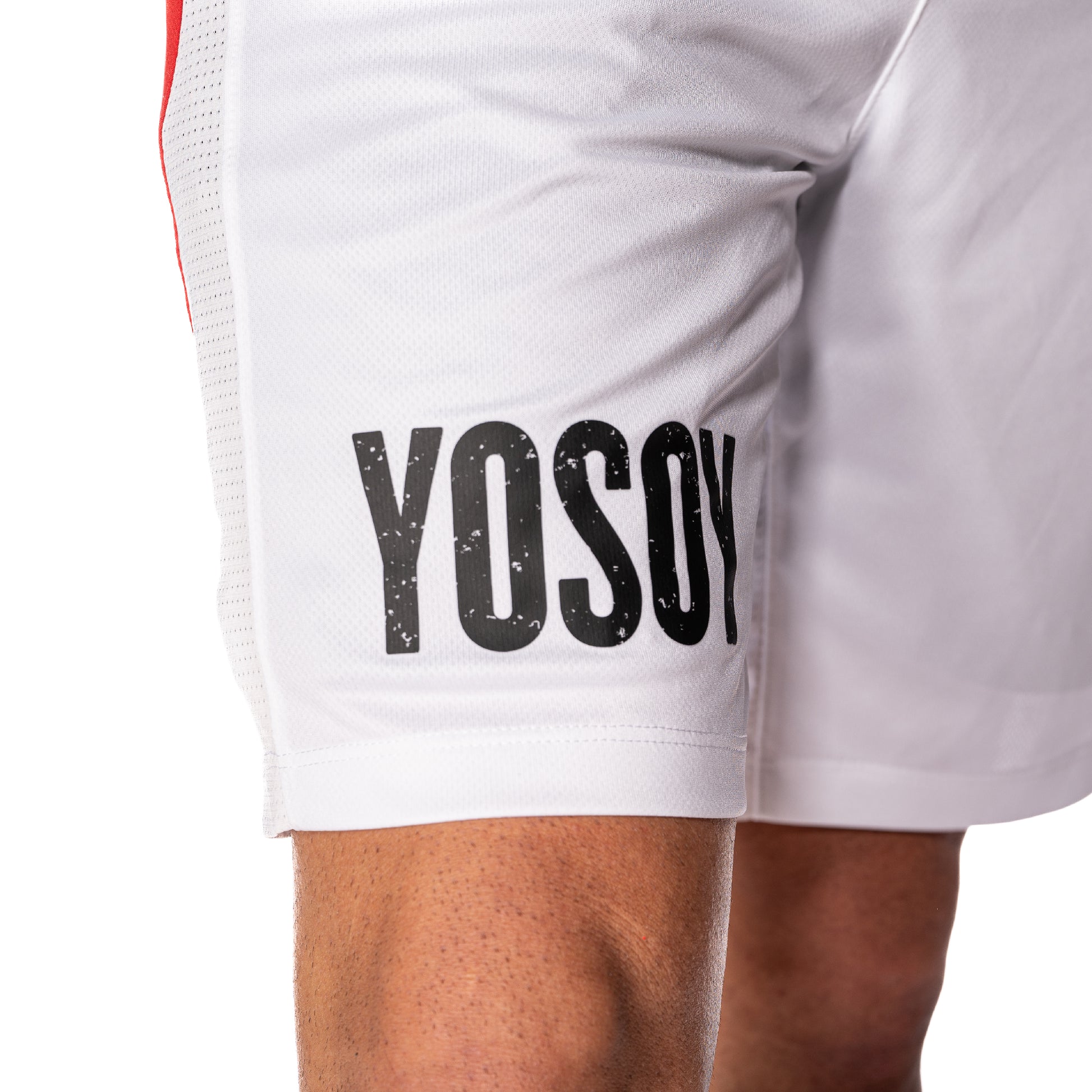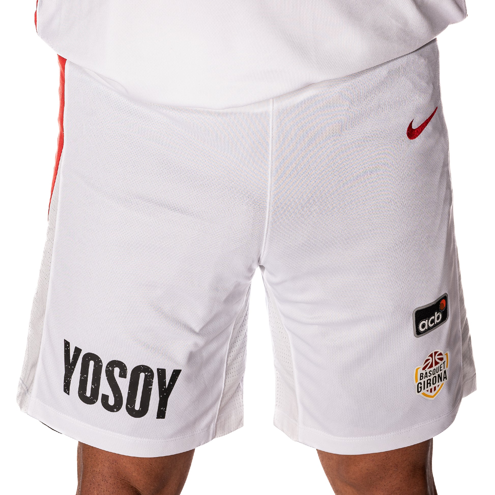 El pantalón color blanco Nike Bàsquet Girona. Su diseño es de color blanco con el escudo del equipo, YOSOY y ACB