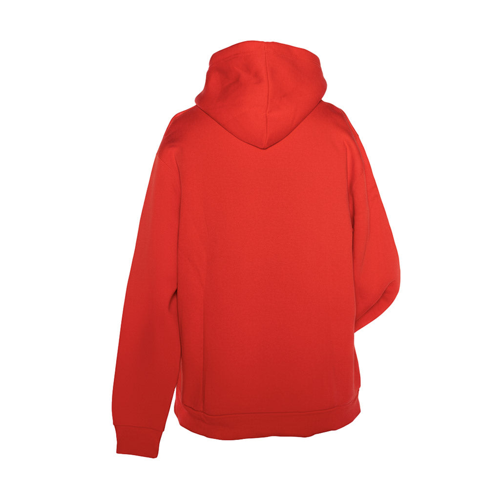 La dessuadora vermella casual del Bàsquet Girona 25/26. A la part pectoral llueix el logotip "GIRONA" pel sentiment de pertinença gironí i de reivindicació de la cultura i la història que representen la ciutat. A sota la paraula “BASKETBALL”, que accentua l'estil de carrer associat amb la moda esportiva.