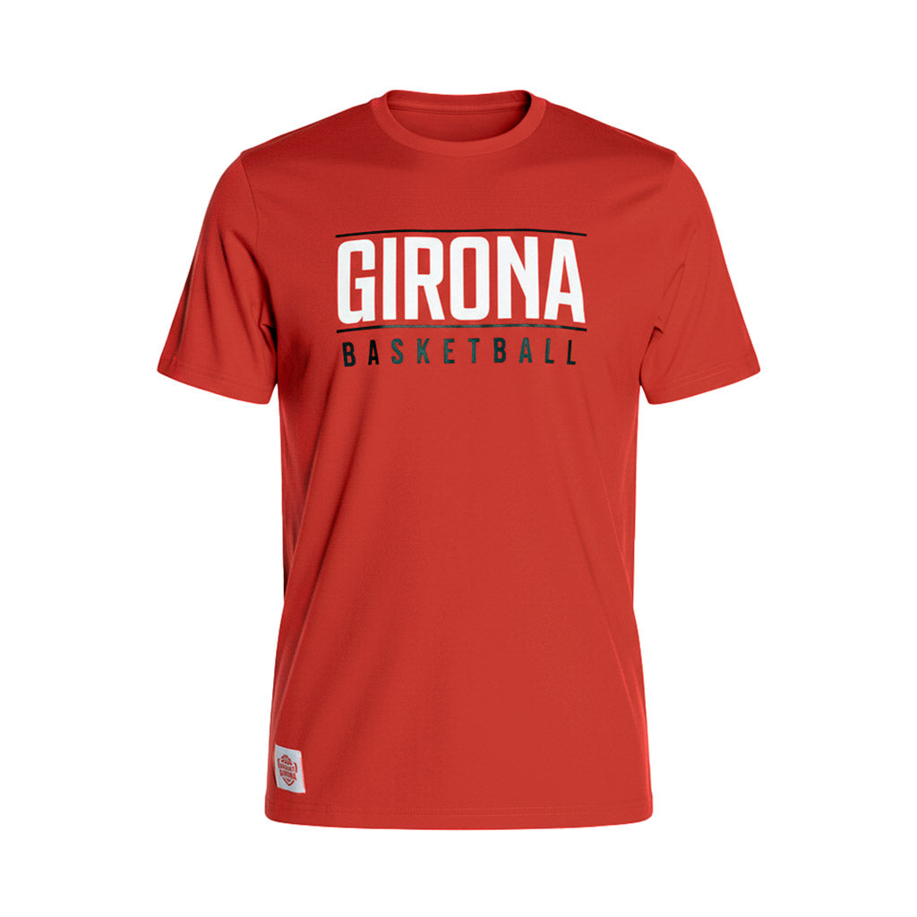 La samarreta vermella casual del Bàsquet Girona 25/26. A la part pectoral llueix el logotip "GIRONA" pel sentiment de pertinença gironí i de reivindicació de la cultura i la història que representen la ciutat. A sota la paraula “BASKETBALL”, que accentua l'estil de carrer associat amb la moda esportiva.